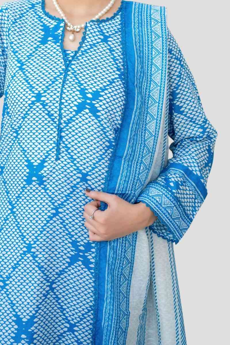 Shirt, Dupatta aur Trouser ka elegant combination jo summer wear ke liye perfect hai. Soft lawn fabric, modern digital prints ke sath.