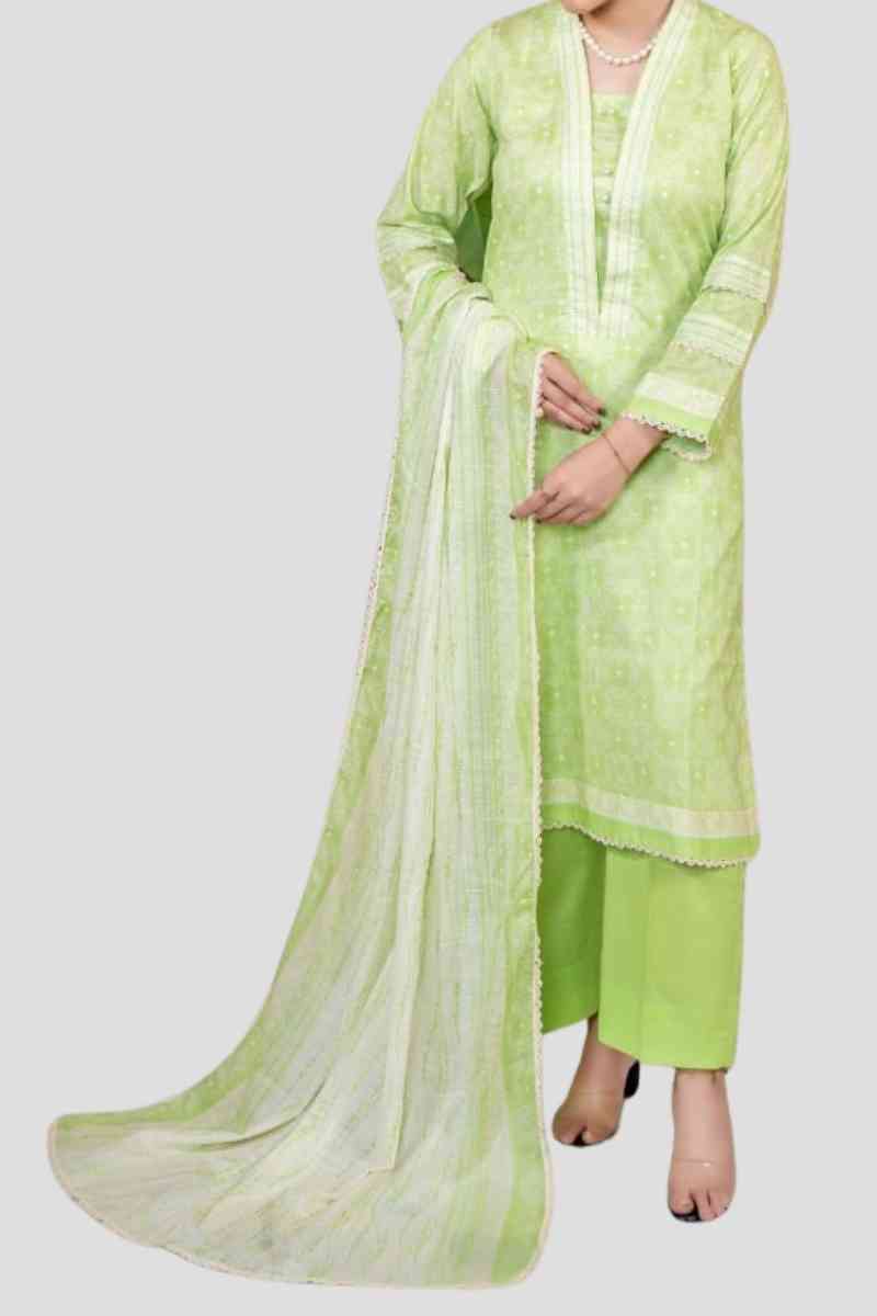 Upgrade your summer wardrobe with this elegant 3 Piece Unstitched Digital Printed Lawn Suit, designed for comfort and style.