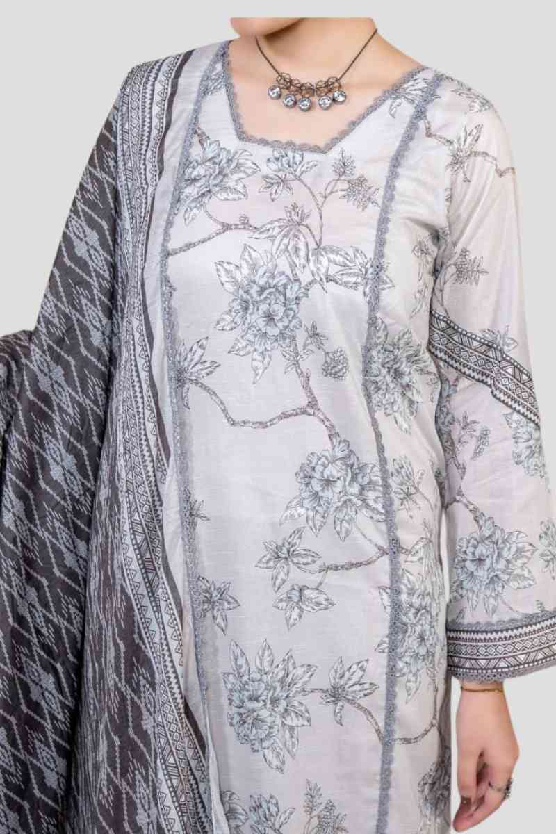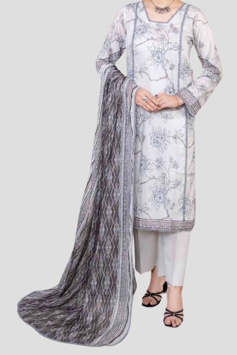 Upgrade your summer wardrobe with this elegant 3 Piece Unstitched Digital Printed Lawn Suit, designed for comfort and style.